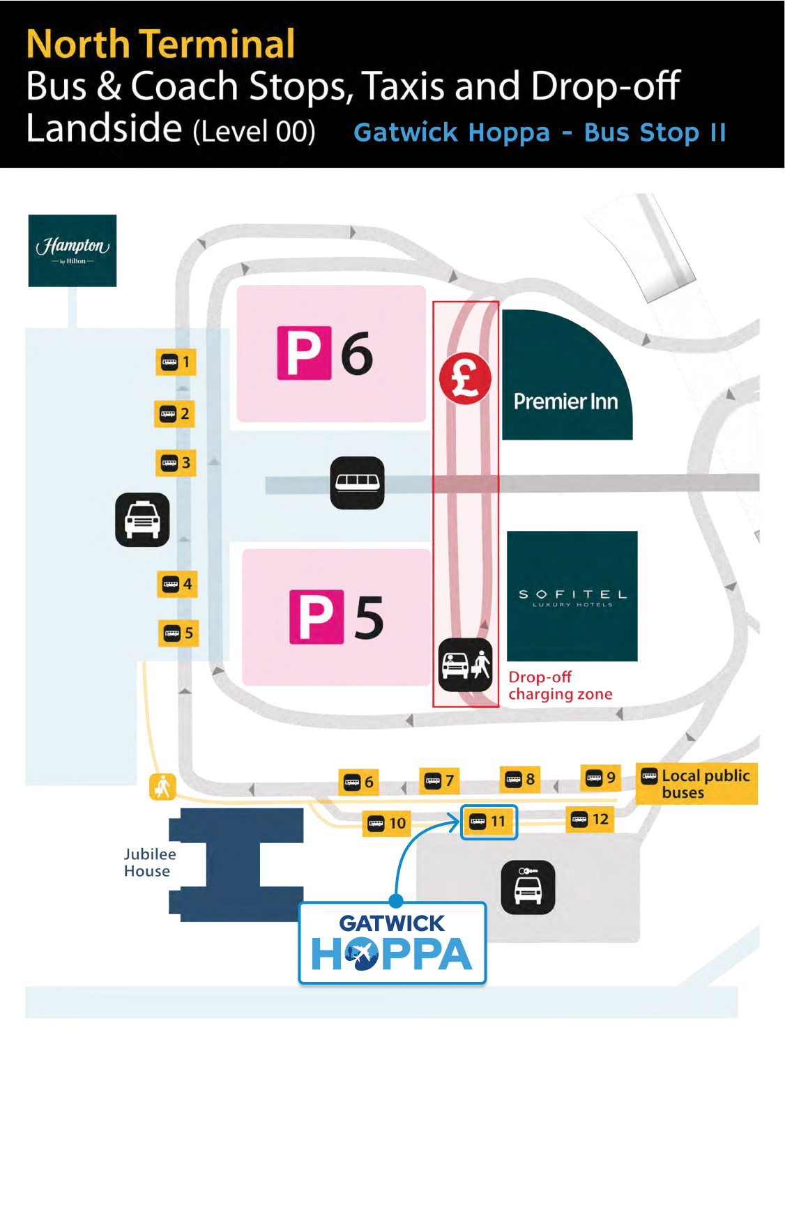 Gatwick Hoppa buses have step free access & can accommodate wheelchairs & buggies.